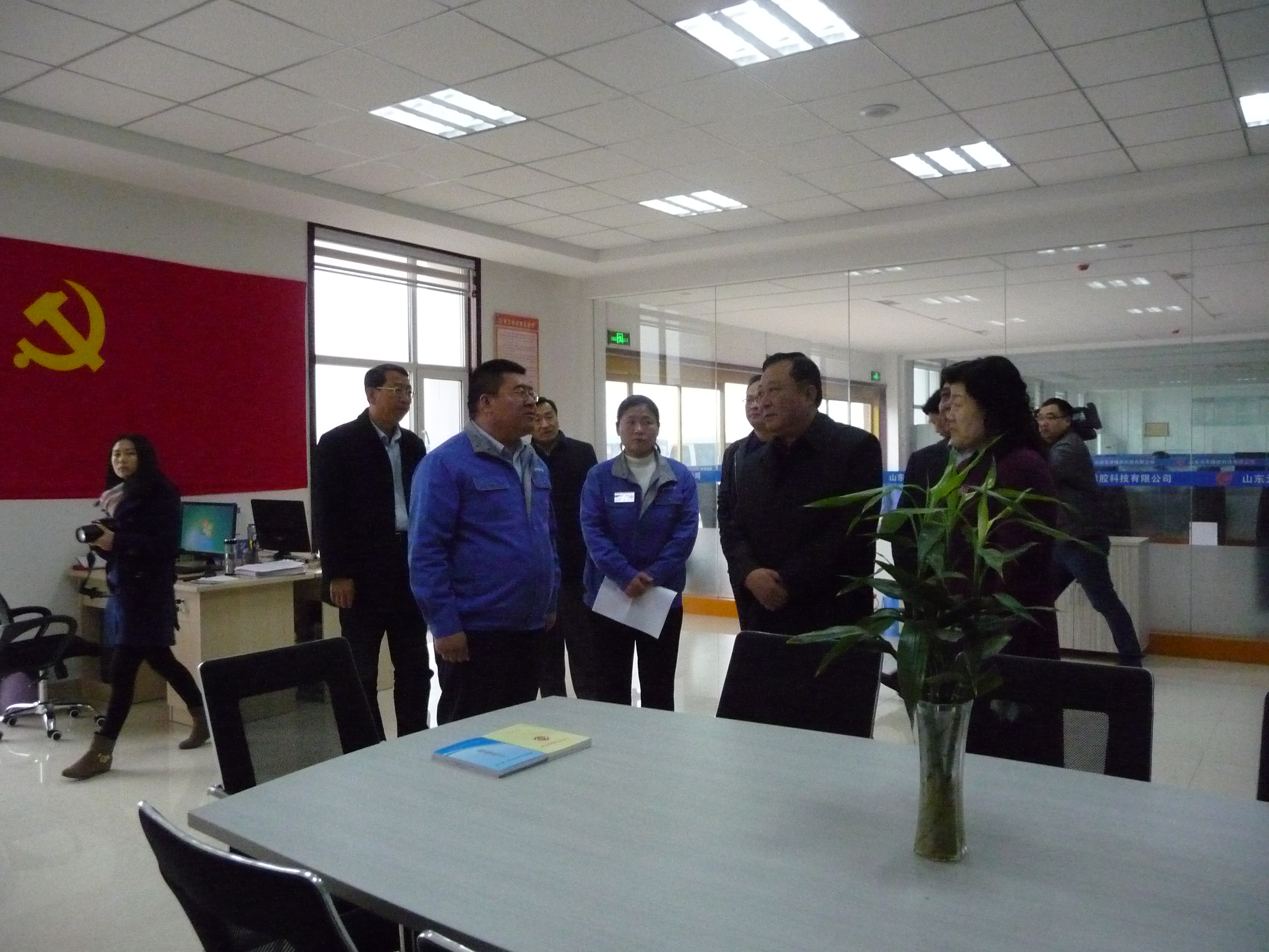 3月28日潍坊市政协副主席、总工会主席 吴建民,潍坊市总工会办公室主任 宋乐昌一行来到我们元丰科技考察指导,高密市委副书记 孙淑芳,高密市委常委、宣传部长、总工会主席 徐方吉,高密市总工会常务副主席、党组书记 宋进岭,醴泉街道主要领导陪同考察。
